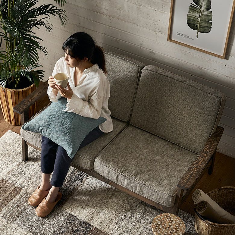 パイン材フレームのファブリックソファ