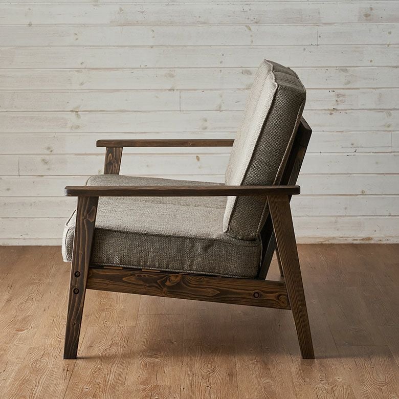 美しい木目の天然木パイン材のフレームと、温かみのあるファブリック。