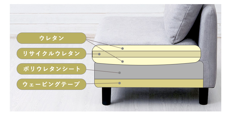 座面クッション:ウレタンフォーム、ポリエステル綿、ポリエステル生地100%