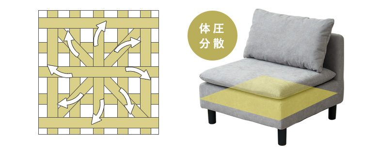 ハンモックのような働きをして、心地よく体圧を分散してくれます。