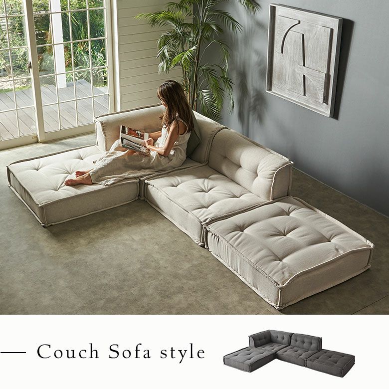単体での使用はもちろん、複数を組み合わせてソファ風に並べたり、ベッドスタイルにしたりと、ライフスタイルやお部屋の雰囲気に合わせてレイアウトは自由自在。