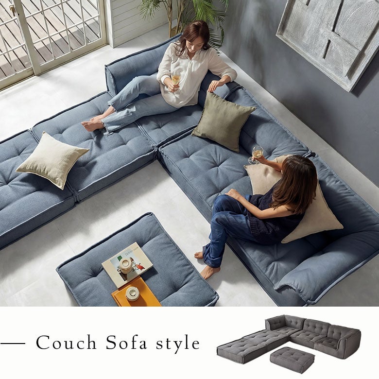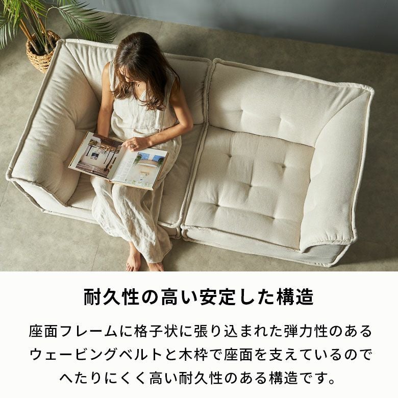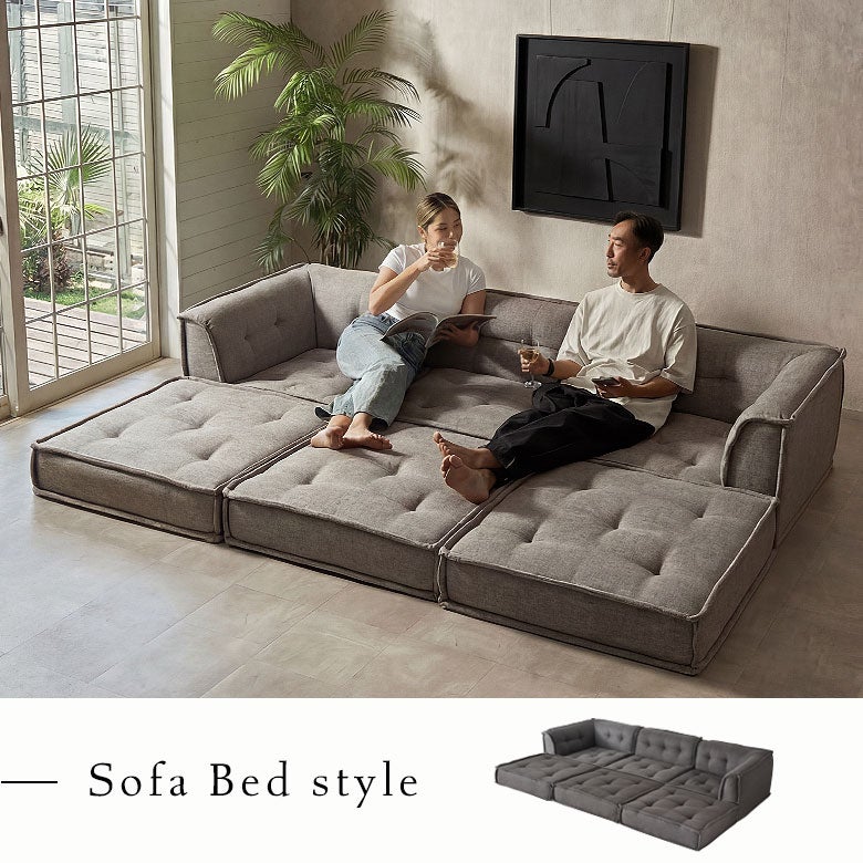 単体での使用はもちろん、複数を組み合わせてソファ風に並べたり、ベッドスタイルにしたりと、ライフスタイルやお部屋の雰囲気に合わせてレイアウトは自由自在。