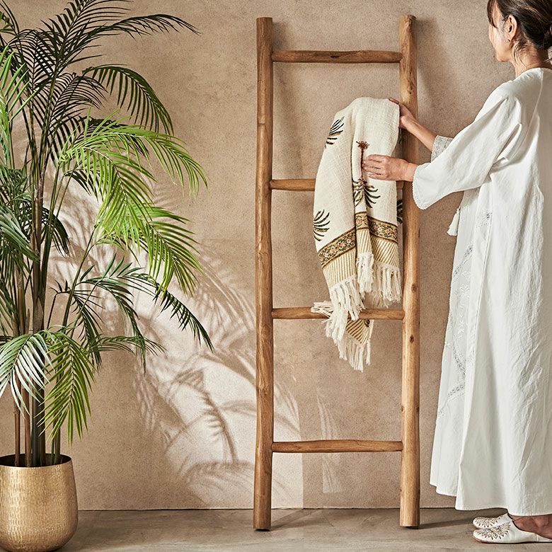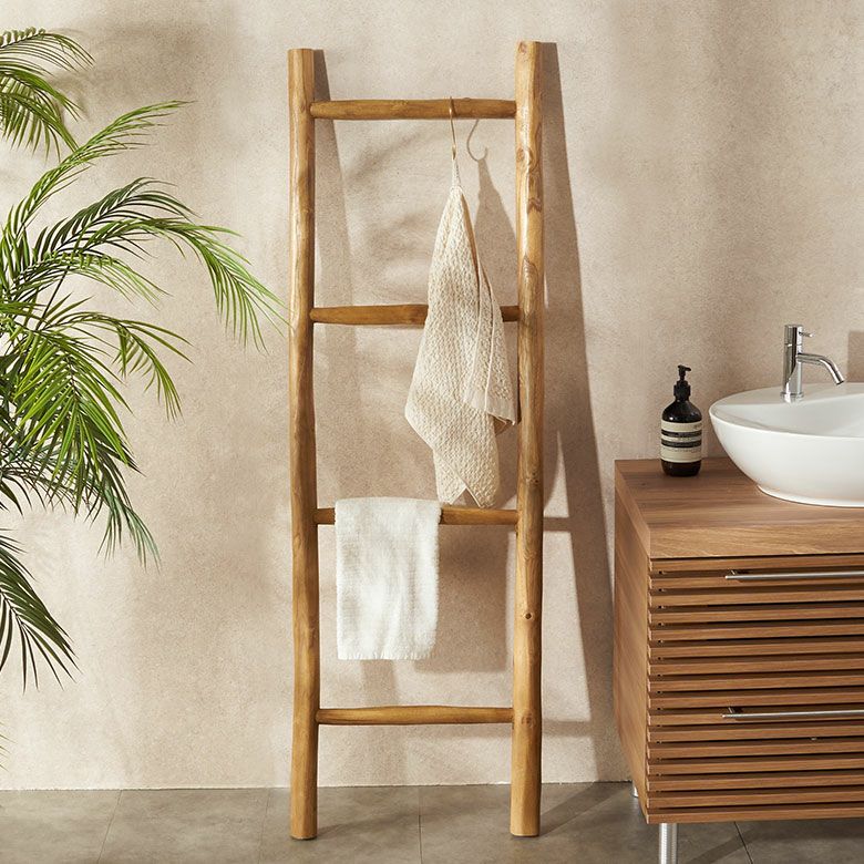 チークウッドのはしご型タオルハンガー
