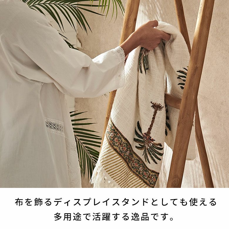 バリ風アジアンスタイルや北欧のナチュラルインテリア、和モダンなど、幅広い空間にマッチします。ホテルやスパでの使用、店舗ディスプレイにもおすすめです。タオルやストールの収納はもちろん、観葉植物や布を飾るディスプレイとしても使用でき、多用途に対応する実用的かつ魅力的なアイテムです。