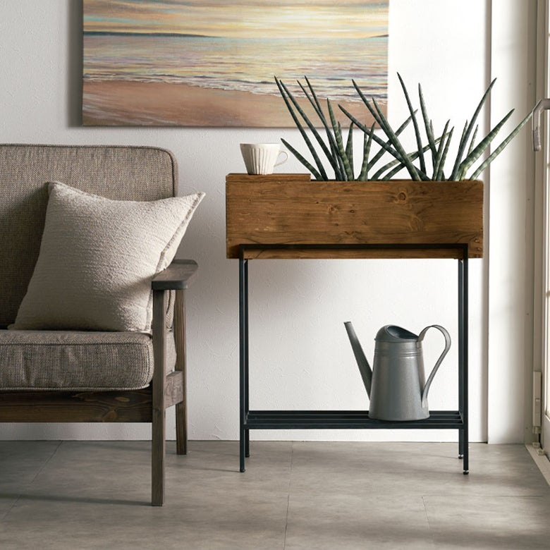 ・リサイクルウッドを使用したプランターシェルフ [Lサイズ]は、観葉植物を飾るだけでなく、収納やサイドテーブルとしても利用できる多機能アイテム