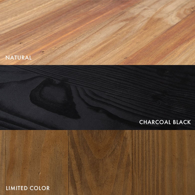 木目がほんのり透けて見える塗装で仕上げたチャコールブラックは、単なる黒ではなく、深みのある色合いが魅力。空間を引き締め、スタイリッシュな雰囲気を演出します。