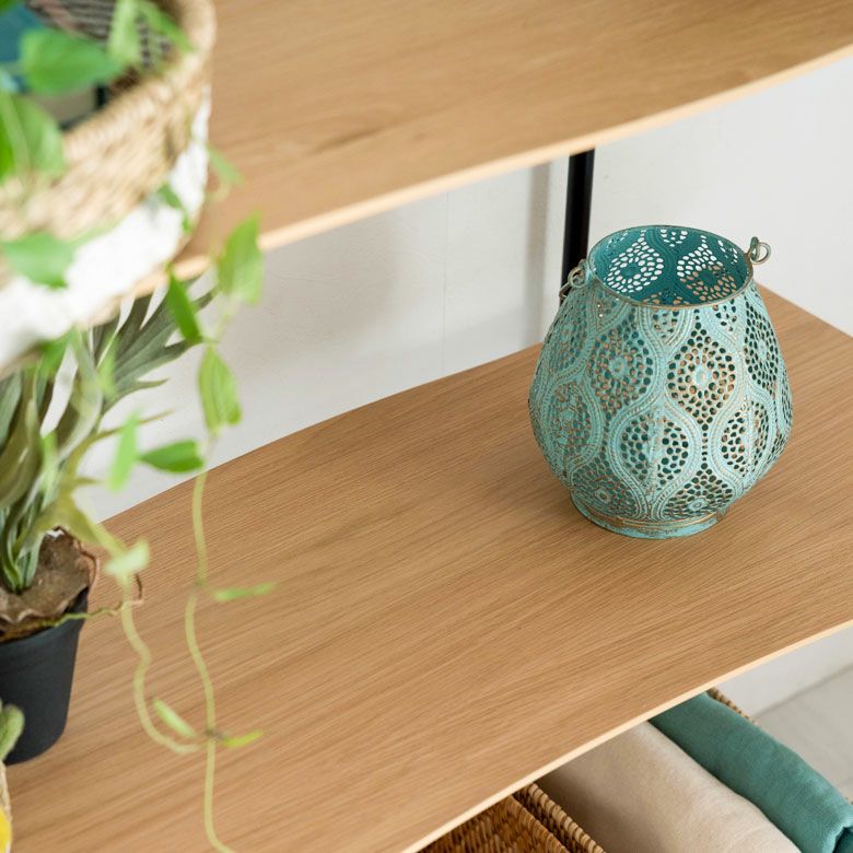 棚板は一枚板の様に側面を緩やかな曲線に仕上げ、柔らかい動きのある印象に。