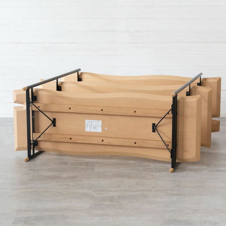 ウッドクラックを模した棚板の割れ目や、木材と同じカラーを施したフレーム脚など、