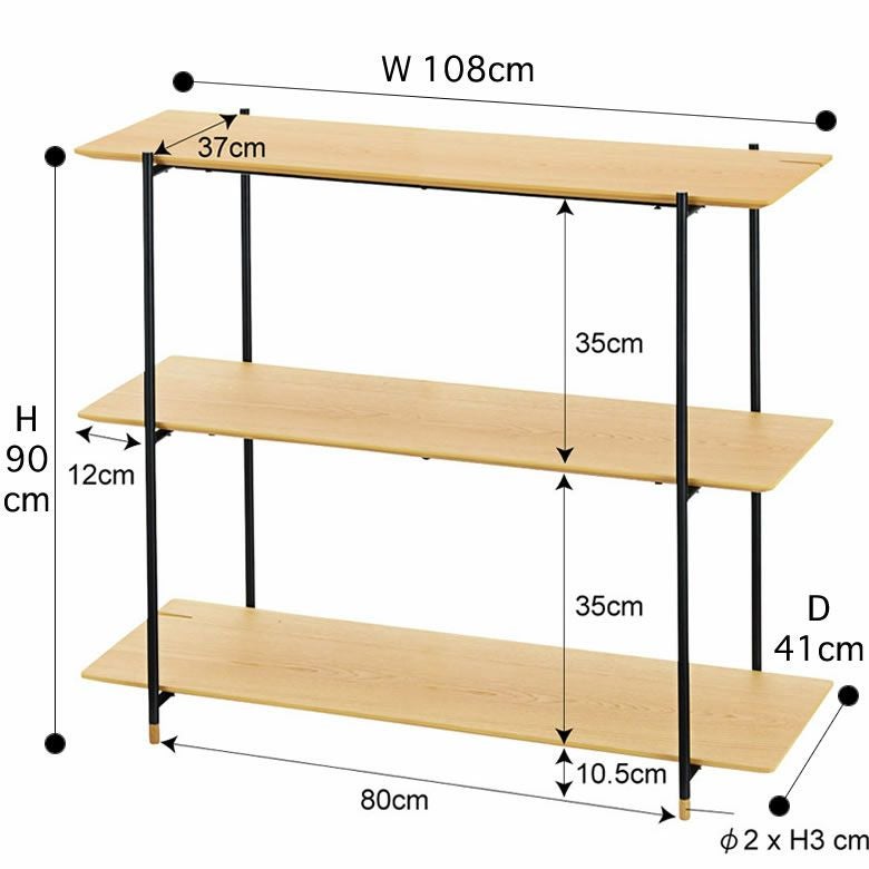 天然木(突板)オープンシェルフ 3段