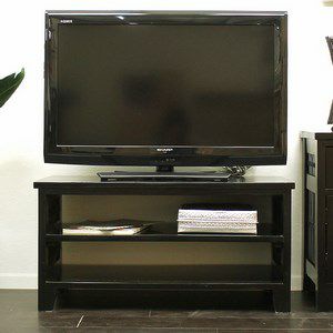 DVDデッキなどのAV機器の収納もバッチリ!棚部分の背面はふさがっていないので配線もスッキリできます。カラーはブラックに近い色味です。(写真のテレビは32インチです) |