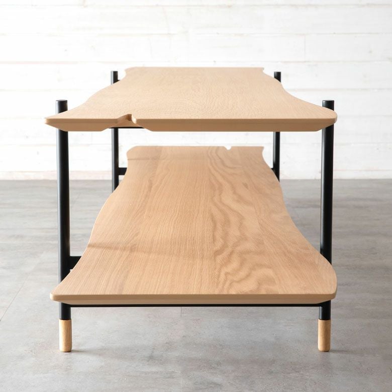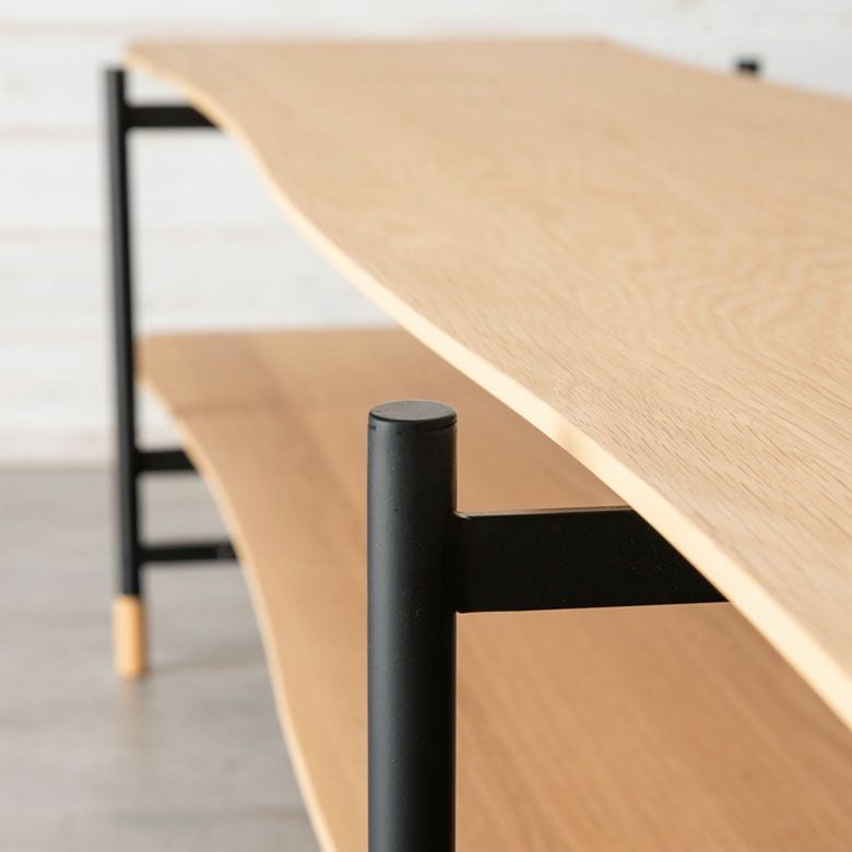 棚板は一枚板の様に側面を緩やかな曲線に仕上げ、柔らかい動きのある印象に。
