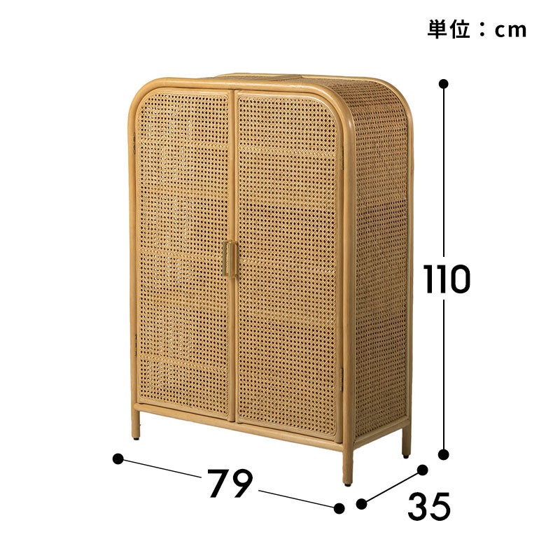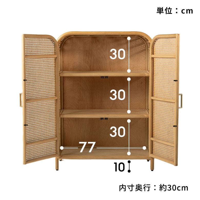 素材:[フレーム・扉]ラタン(50%皮付き)、[棚板]合板