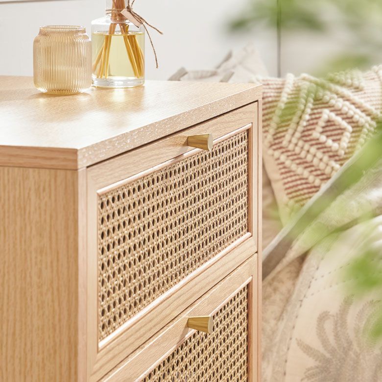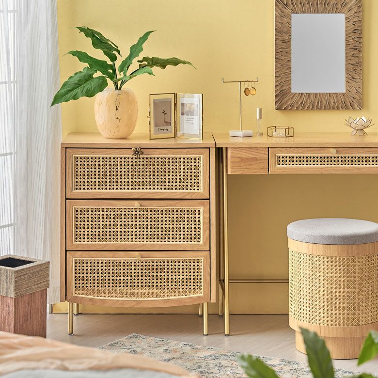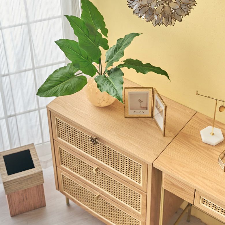 天然オーク無垢材と、カゴメ編みの天然素材ラタンを贅沢に使い