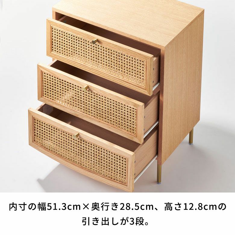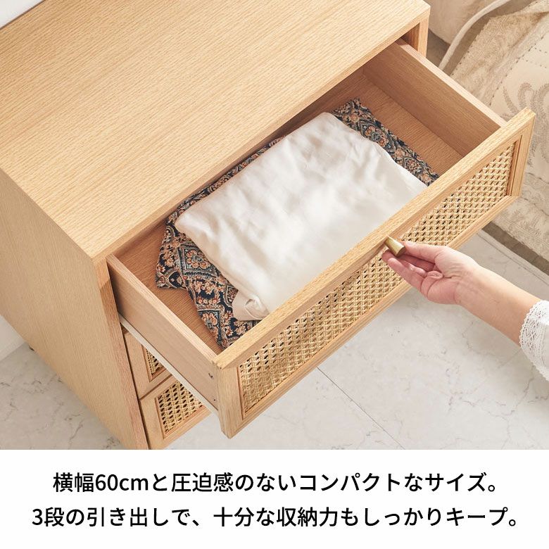 3段の引き出しで、十分な収納力もしっかりキープ。
