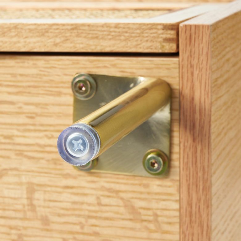 引き出しのつまみを別売の真鍮の取っ手に付け替えし、カスタマイズを楽しむことも。