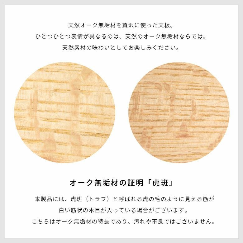 こちらはオーク無垢材の特長であり、汚れや不良ではございません。