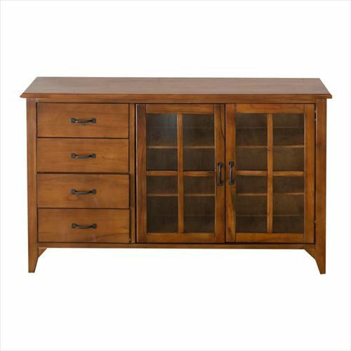 ガラス扉と引き出しがついた、収納力たっぷりのリビングチェスト。