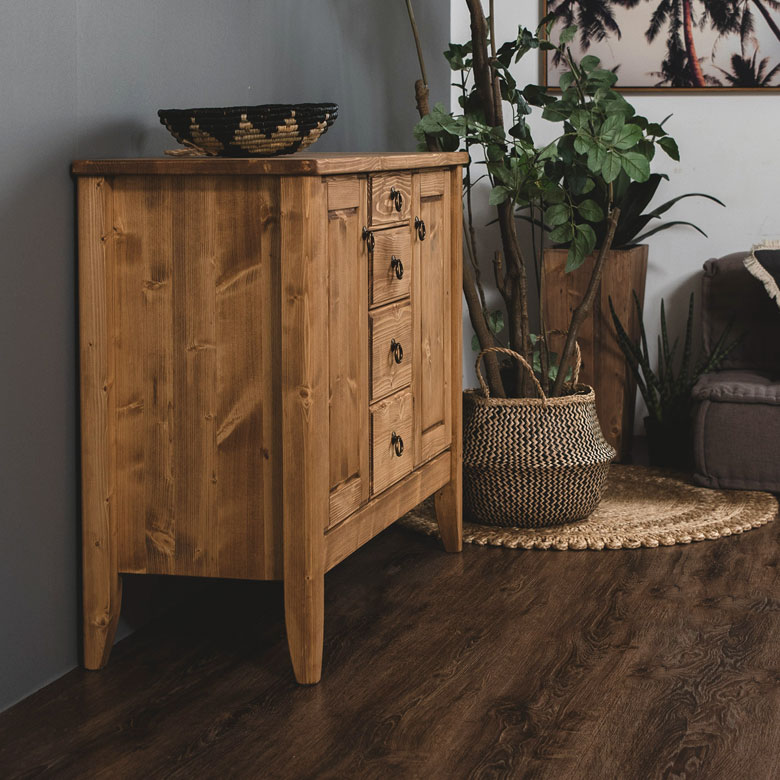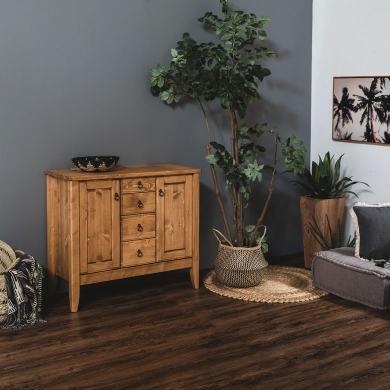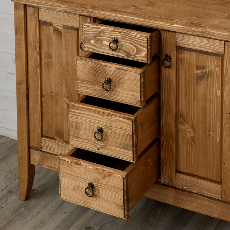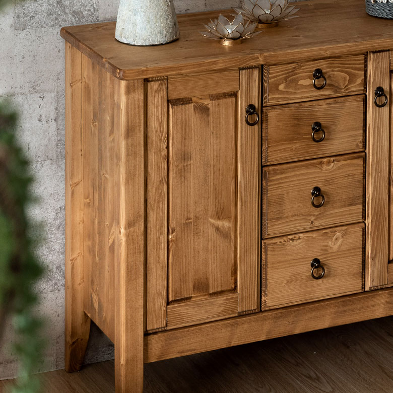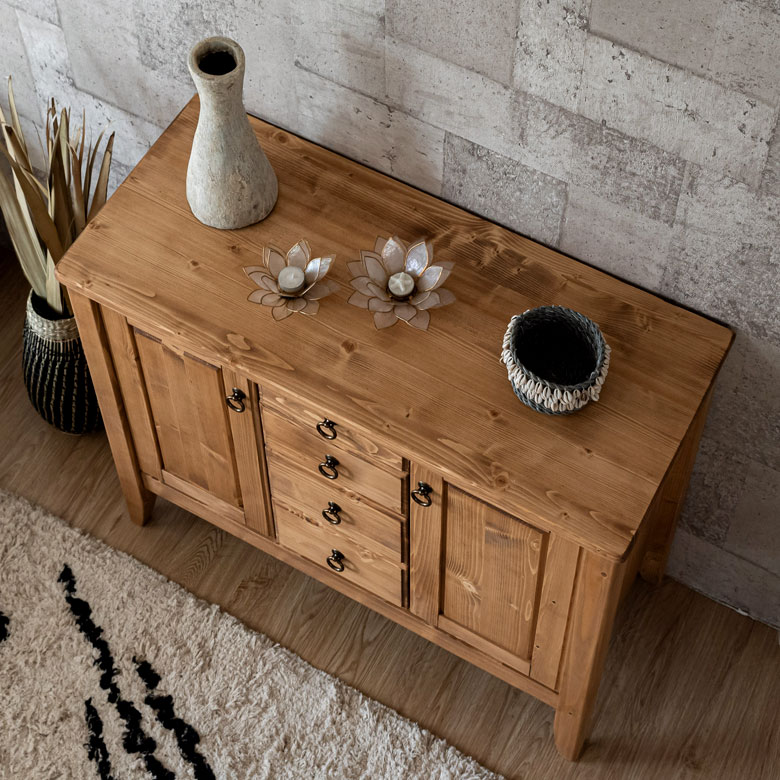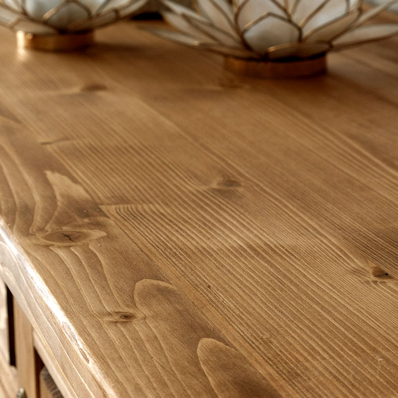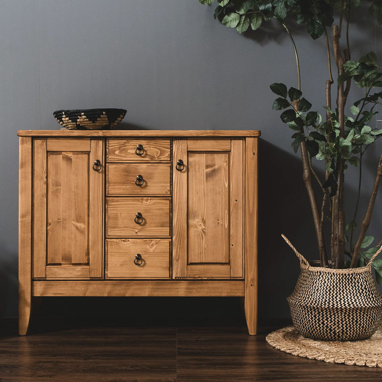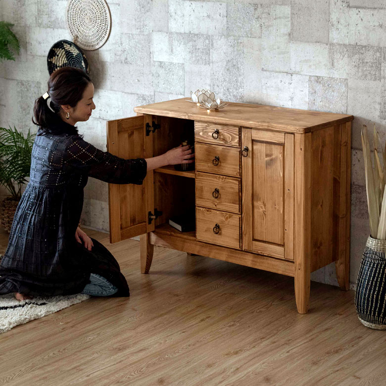 温かみのある天然木パイン材のサイドボード。