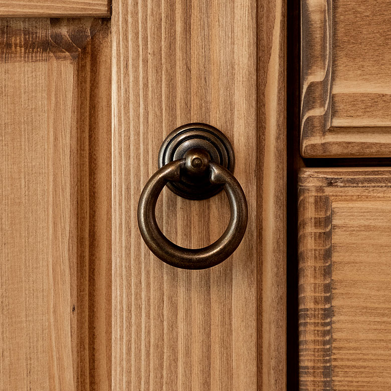 リング状の取っ手がアンティークな装い。