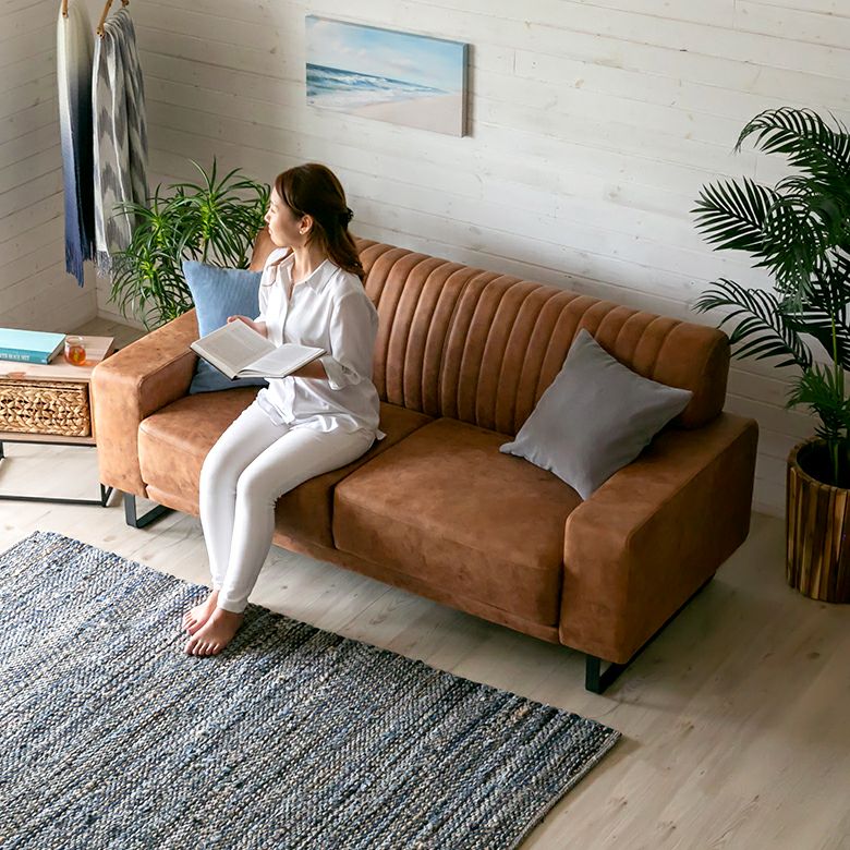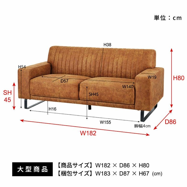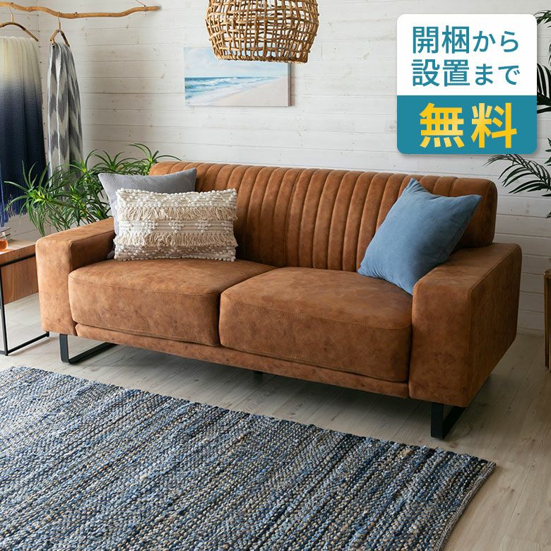 ソファー インテリア 合成皮革 大きめ お手入れ簡単 肘掛付き ソファ 2.5人掛け クロスレザー ポリエステル スチール脚 W 182 × D 86 ブラウン [91529]【 合皮 人工皮革 家具 ポケットコイル 3人掛け 2WAY ロースタイル フェイクレザー レザー調 北欧 リゾート おしゃれ ヴィンテージ風 ミッドセンチュリー カフェ アジアン 】