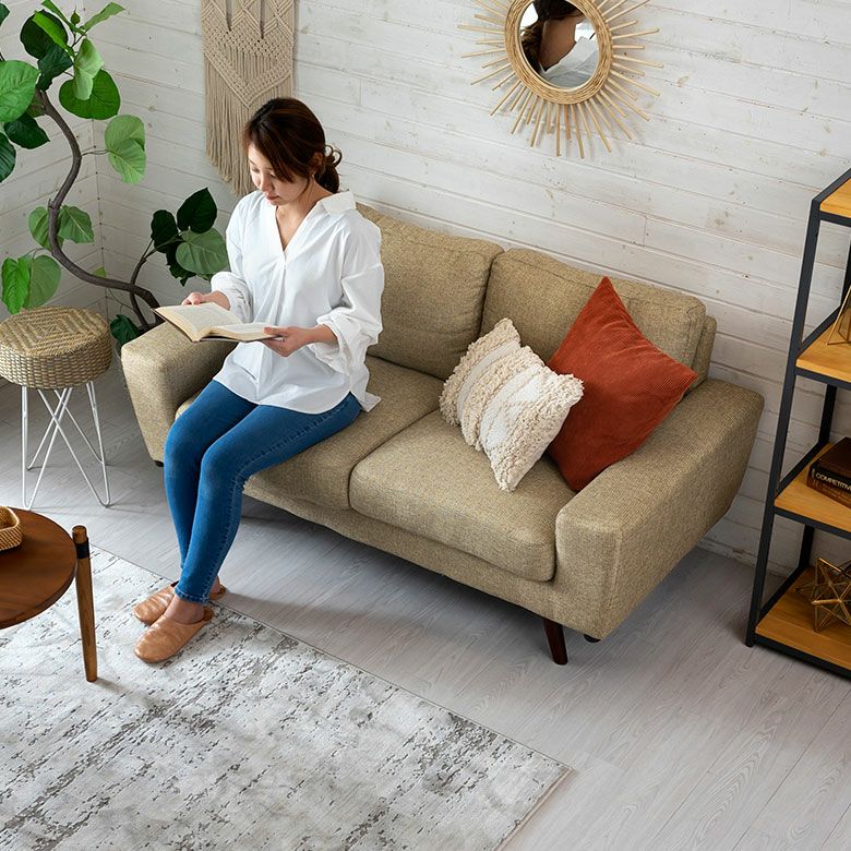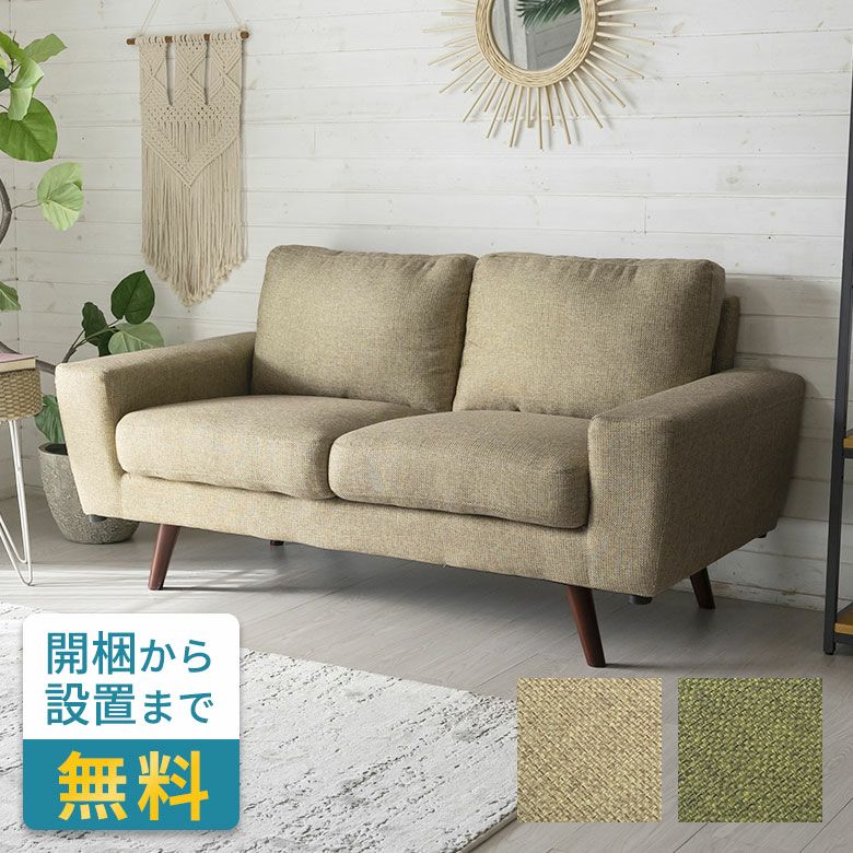 2Wayソファ 2人暮らし 2P 2P 新生活 アースカラー カフェ ソファ おしゃれ モダン ベージュ グリーン W 150cm D 81cm H 80cm 2人掛け リビング ダイニング 木フレーム ロータイプ可 ポケットコイル ポリエステル ファブリック 北欧 ライトグリーン 脚付き 2WAY 2way フロアソファ ソファー 家具 カウチ リゾート アジアン 91554