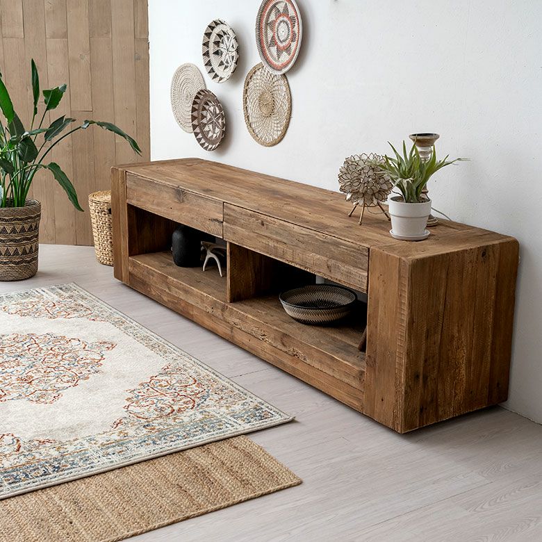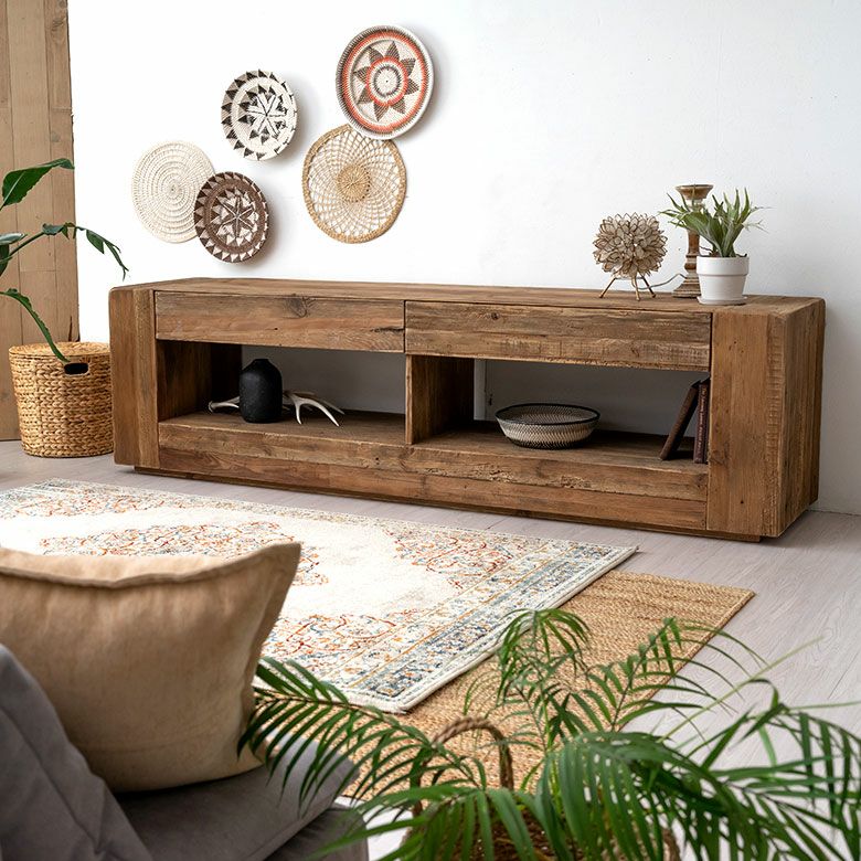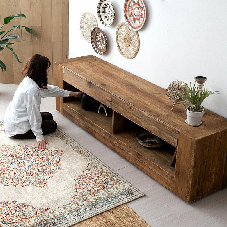 AV収納 ダイニング 32型 42型 50型 65型 70型 対応 木目 天然木 ローボード ディスプレイ台 大型 TVボード W 210cm x D 48cm x H 60cm オーディオ 本棚 飾り棚 家具 インテリア リビング テレビボード TV台 シンプル 衣類 収納 テレビラック 北欧 リゾート アンティーク調 ビンテージ風 ヴィンテージ風 アジアン [91559]