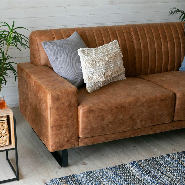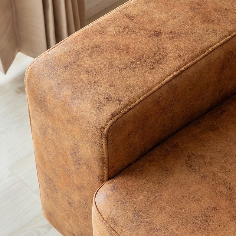 幅広の肘掛や、約4cm幅のブラックスチールの脚など