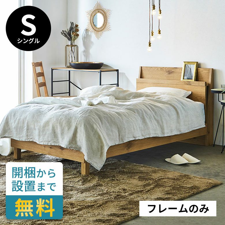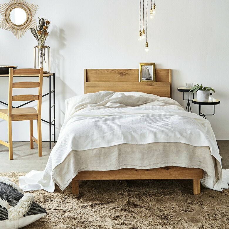 無垢のナラ材を使用した、すのこ付きのベッドフレーム。