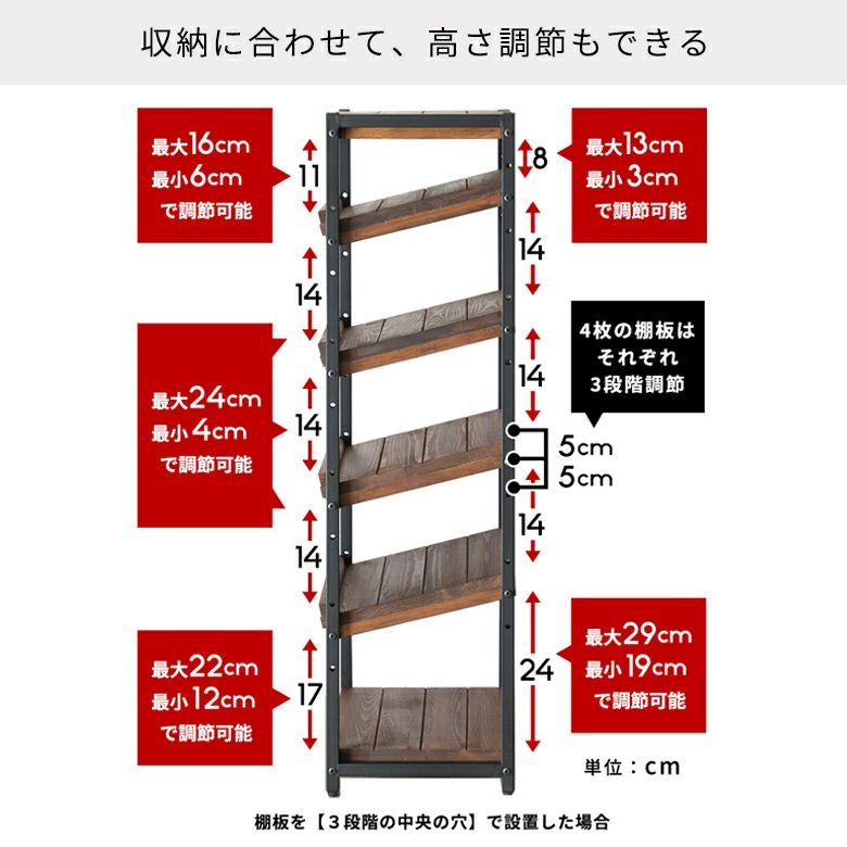 上下5cmにダボ穴があり、板のピッチを変えたり