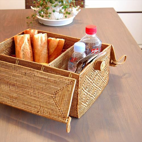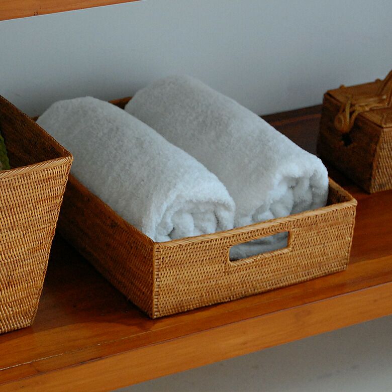 散らかる小物をすっきり収納できるアタで編まれた取っ手付き収納ボックスや 二重構造のごみ箱など、バリ島の人気アジアン雑貨。