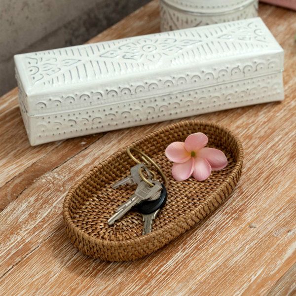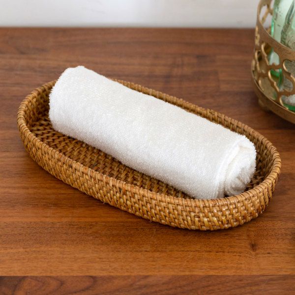 Timeless design.Ata and rattan towel tray.