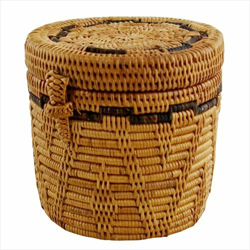 バリ島の天然素材アタで編まれた筒形小物入れケース。