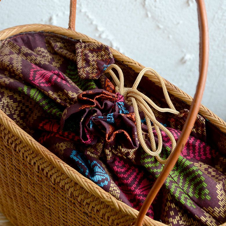 巾着タイプの内布・インナーバッグが縫い込まれているので、中身が見えず安心。
