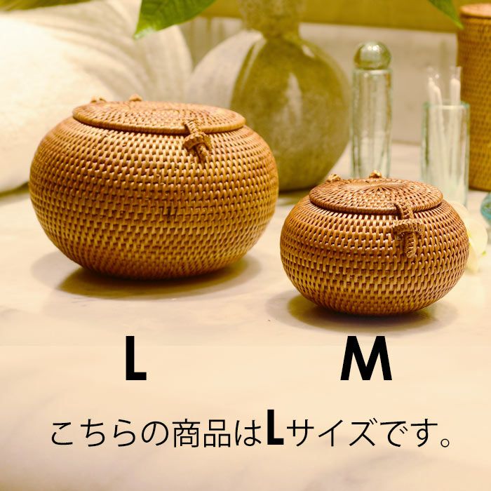 アタで編まれたボールケース[Lサイズ] バリ島トゥガナン村の職人がひとつずつ丁寧に編んで作られたボールケース。 アタを編んでボールのように丸い形に仕上げるのはとっても難しい仕事なんです。 フタが付いているのでキャンディなどのお菓子を入れてもいいですね。 コロンと丸くてかわいいデザインは置いているだけでもインテリアとしての効果抜群。 |