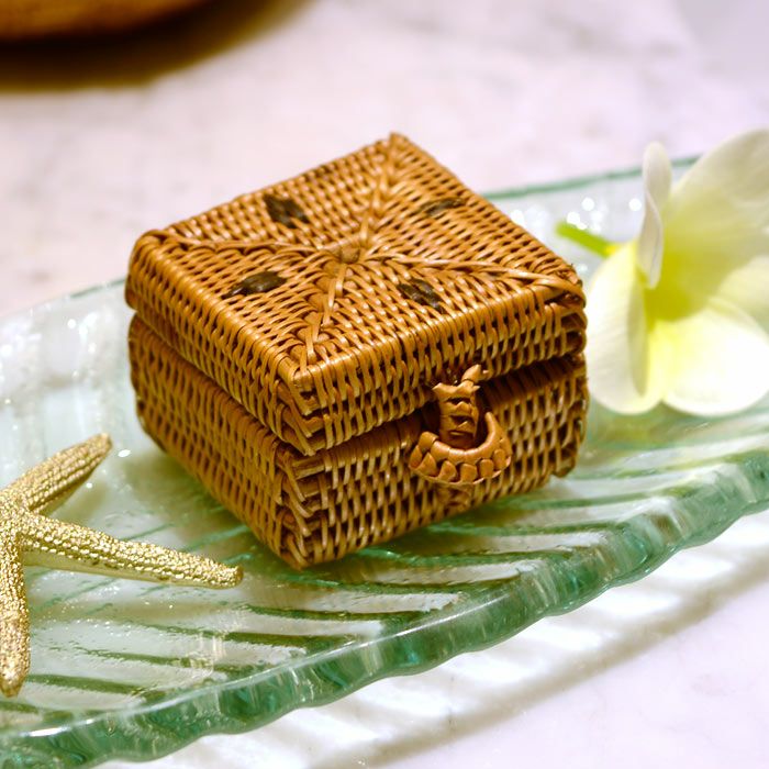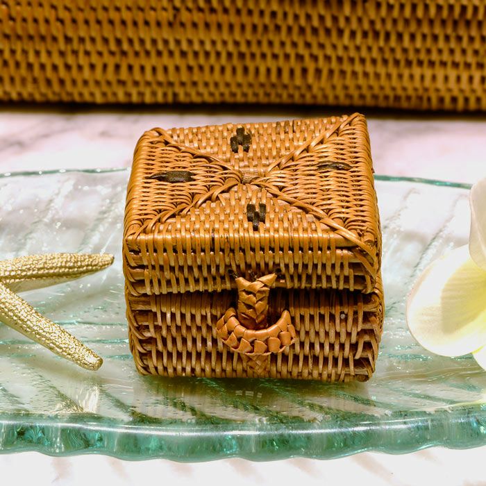 バリ島トゥガナン村の職人がひとつずつ丁寧に編んで作られたアタの小さな小物入れ。