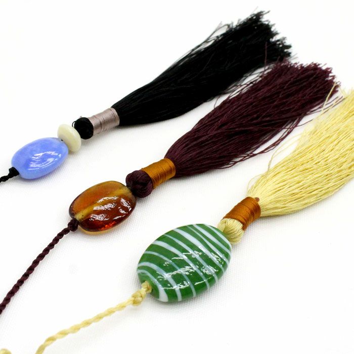 カラフルなガラス玉を組み合わせた当店オリジナルのタッセル。タッセルは3色からお選びいただけます。 |