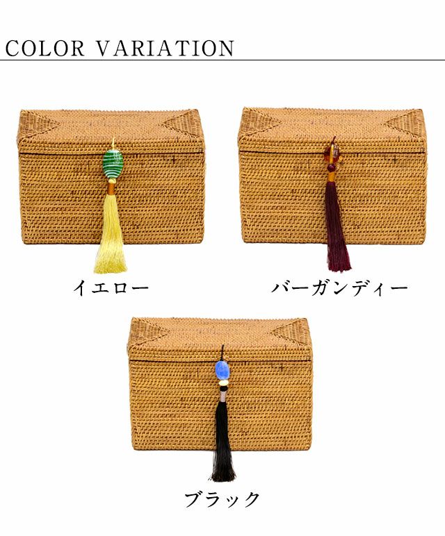 フタ部分にカラフルなオリジナルタッセルが付いています。 |