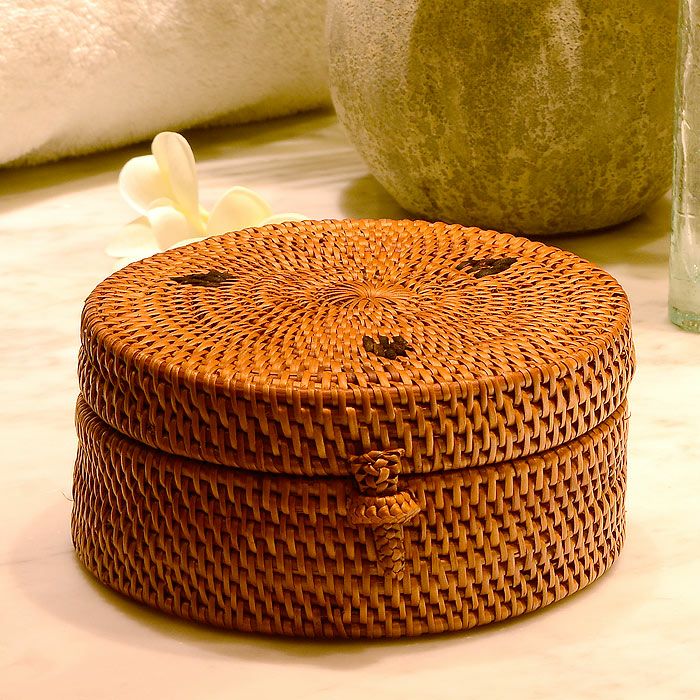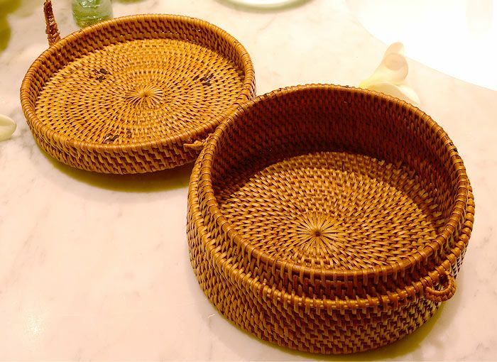 丸い形のフタ付き小物入れケース バリ島トゥガナン村の職人さんがひとつずつ丁寧に編んで作ったアタのフタ付き小物入れ。 |
