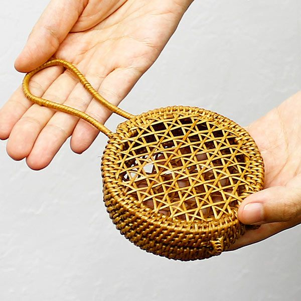 バリ島のトゥガナン村でひとつひとつ手作りのアタ製ポプリケース。