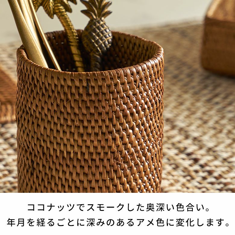 インドネシアに自生するアタと呼ばれる、ツル性植物で編まれた天然素材100%の筒型スタンドケース。
