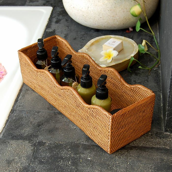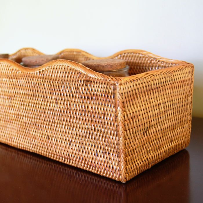 バリ島トゥガナン村の職人さんがひとつずつ丁寧に編んで作ったアタの小物入れケースは幅約35cmと大きめサイズ。細長い形なのでキッチンに散らばる小瓶や調味料を並べて収納するのにもぴったり。 シンプルですっきりとしたデザインなのに存在感があるのは細かい編み目が美しいアタならでは。 美しい編み目もさることながら、軽くて丈夫なので使い勝手も抜群なケースです。 あなたのアイデア次第で活用方法が広がります。