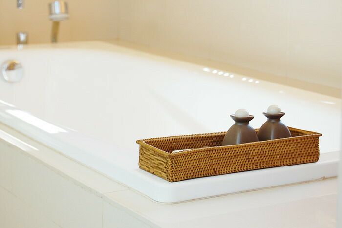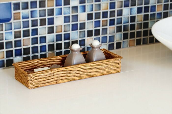 洗面所などで石鹸や化粧水などを入れておくのに重宝するアジアンバスケット。