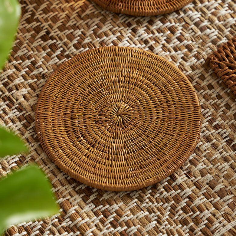 丁寧に編み上げられたハイクオリティの円形コースター。丸みのあるフォルムがテーブルにやさしく馴染み、ティータイムやカフェ風の食卓に温かみをプラス。インドネシアの熟練職人による美しい編み目が特徴です。