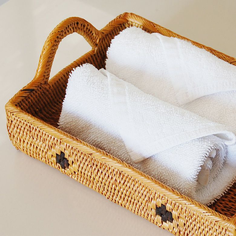 洗面所にタオルをトレイにのせるだけで、日常にちょっとしたアジアンな雰囲気が出てオシャレに見えて◎