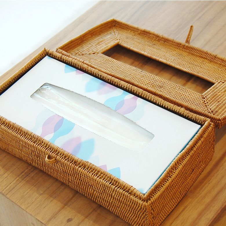 味気ない紙の箱ティッシュをこのアタのケースに入れるだけで、素敵なインテリアに早変わり。