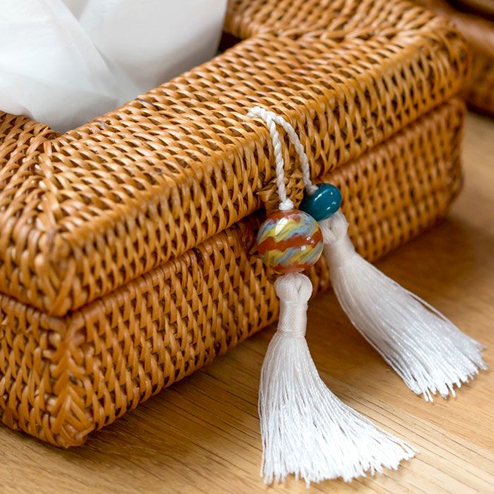 カラフルなガラス玉を組み合わせた当店オリジナルのタッセル。タッセルは3色からお選びいただけます。 |