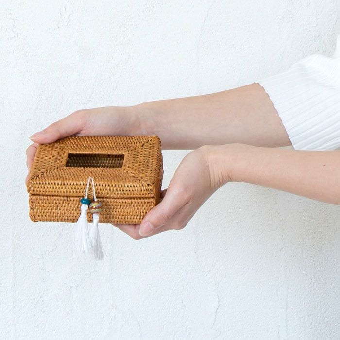 バリ島のトゥガナン村で、ひとつひとつ丁寧に編まれたアタのポケットティッシュケース。