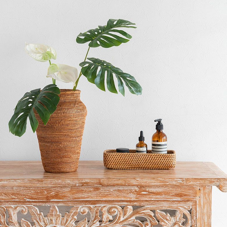 アタの素材感を活かしたバスケットは、リゾートインテリアや植物とも相性抜群。