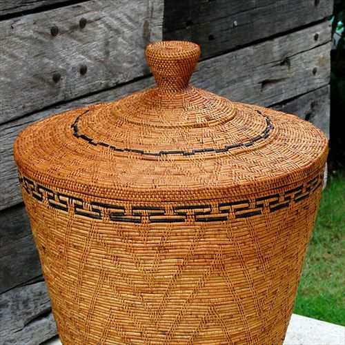 蓋付き ハンドメイド おもちゃ収納 リビング 衣類 洗濯物 おもちゃ フタ付き カゴ 籠 かご 店舗 カフェ レストラン サロン スパ ホテル 天然素材 アジアンリゾート ギフト プレゼント バスケット ふた付き ポットタイプ Sサイズ 壺型 アタ 約 W 32cm D 32cm H 42cm ランドリーバスケット かごバスケット 収納 収納バスケット 洗濯物入れ ゴミ箱 ごみ箱 ダストボックス おしゃれ 北欧 リゾート 雑貨 バリ インテリア SDGs アジアン [14047]