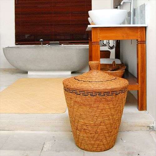散らかる小物をすっきり収納できるアタで編まれた取っ手付き収納ボックスや 二重構造のごみ箱など、バリ島の人気アジアン雑貨。